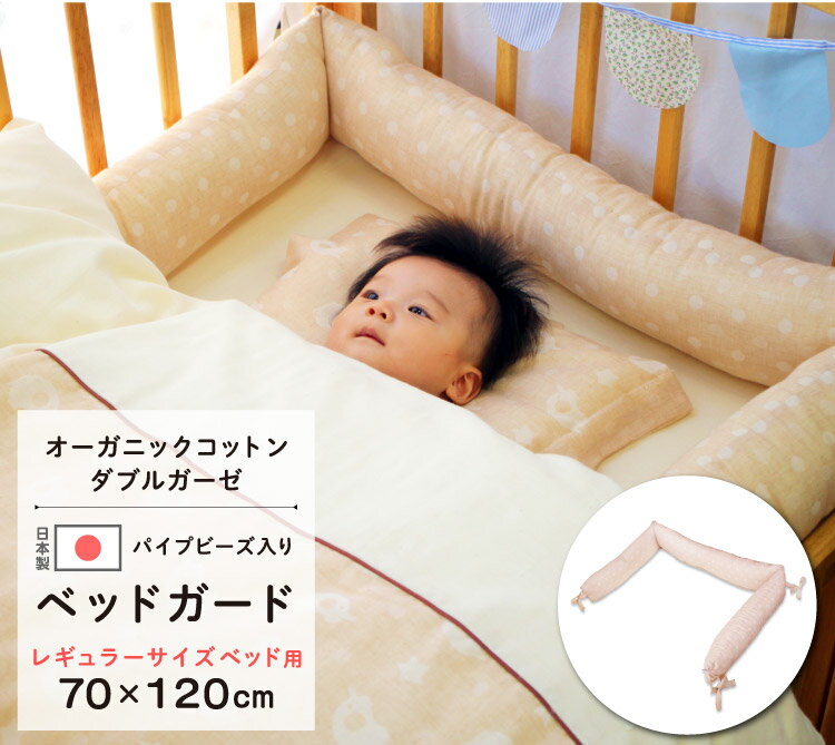 ベッドガード 半周 日本製 70×120cmレギュラーサイズ ベビーベッド用オーガニックコットン ダブルガーゼ パイプビーズ水玉 月と雲 星くず 無地ガーゼ生地 綿100%un doudou オリジナル ノンキャラ 送料無料