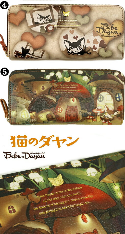 YBB1169★突然限定セール!【猫のダヤンラウンドファスナー長財布★フクロウ /四葉のクローバー/ラベンダー/アンティークハート/キノコの家】Bebedayan わちふぃーるど べべダヤン 猫柄長札財布 ネコウォレットCAT ねこ ロングウォレット 可愛い猫のダヤン長財布 ベベダヤン