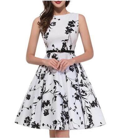【メール便送料無料!】ワンピース(ホワイト)Aラインシルエットのクラシカルフラワープリントワンピ ベルト付き【 パーティー 二次会 ドレス ワンピース ミニ お呼ばれ 婚活 キャバ ナイトドレス】【メール便OK】